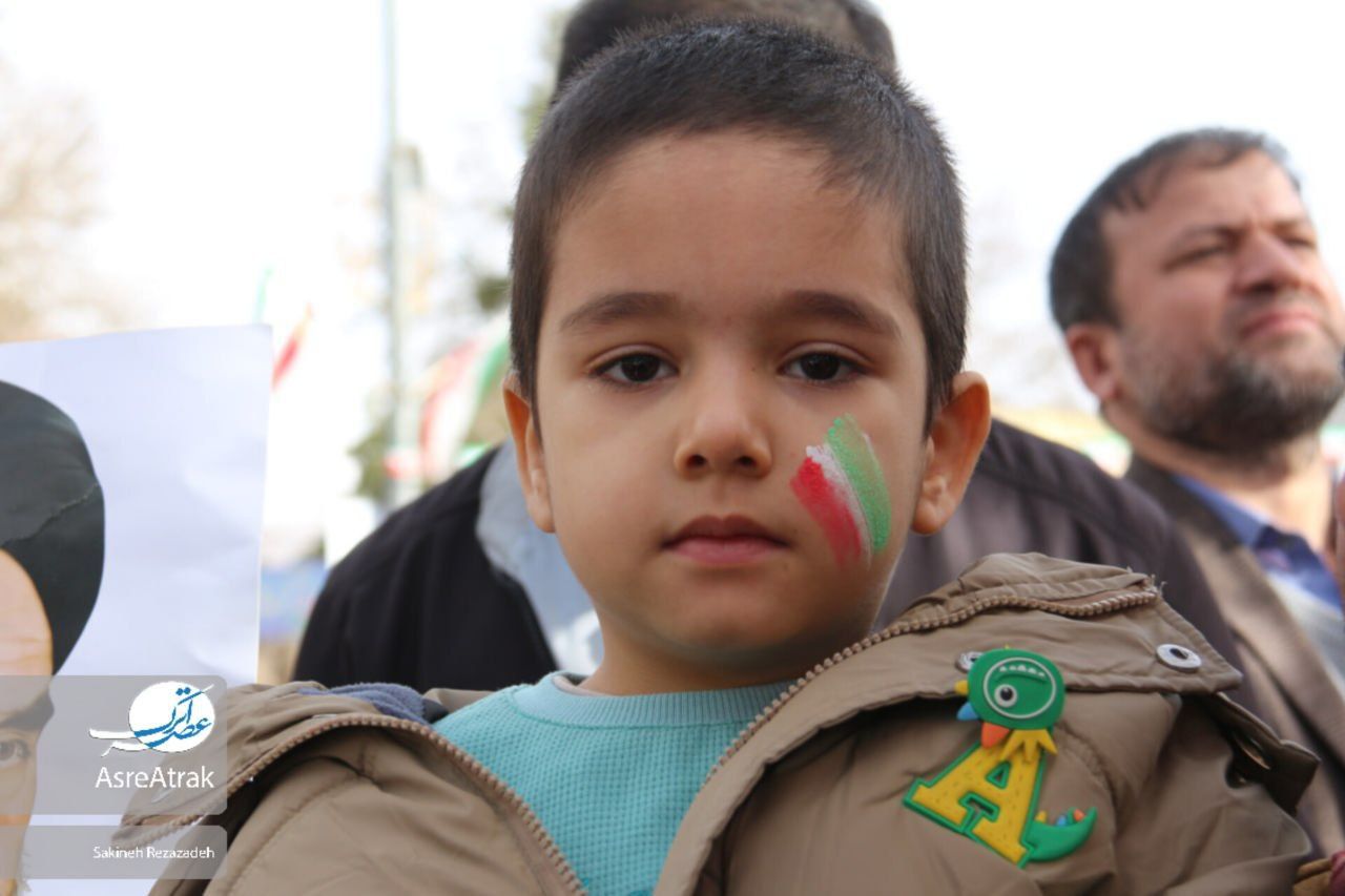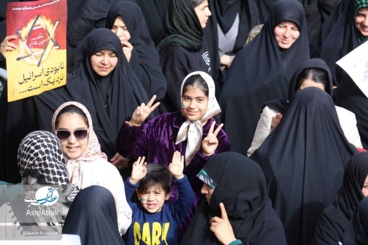 در میان این جمعیت انبوه، حضور پررنگ نوجوانان و جوانانی که با حمل پرچم سه رنگ ایران و تصویر رهبر انقلاب اسلامی در حرکت بودند، جلوهای خاص به این راهپیمایی بخشیده بود.